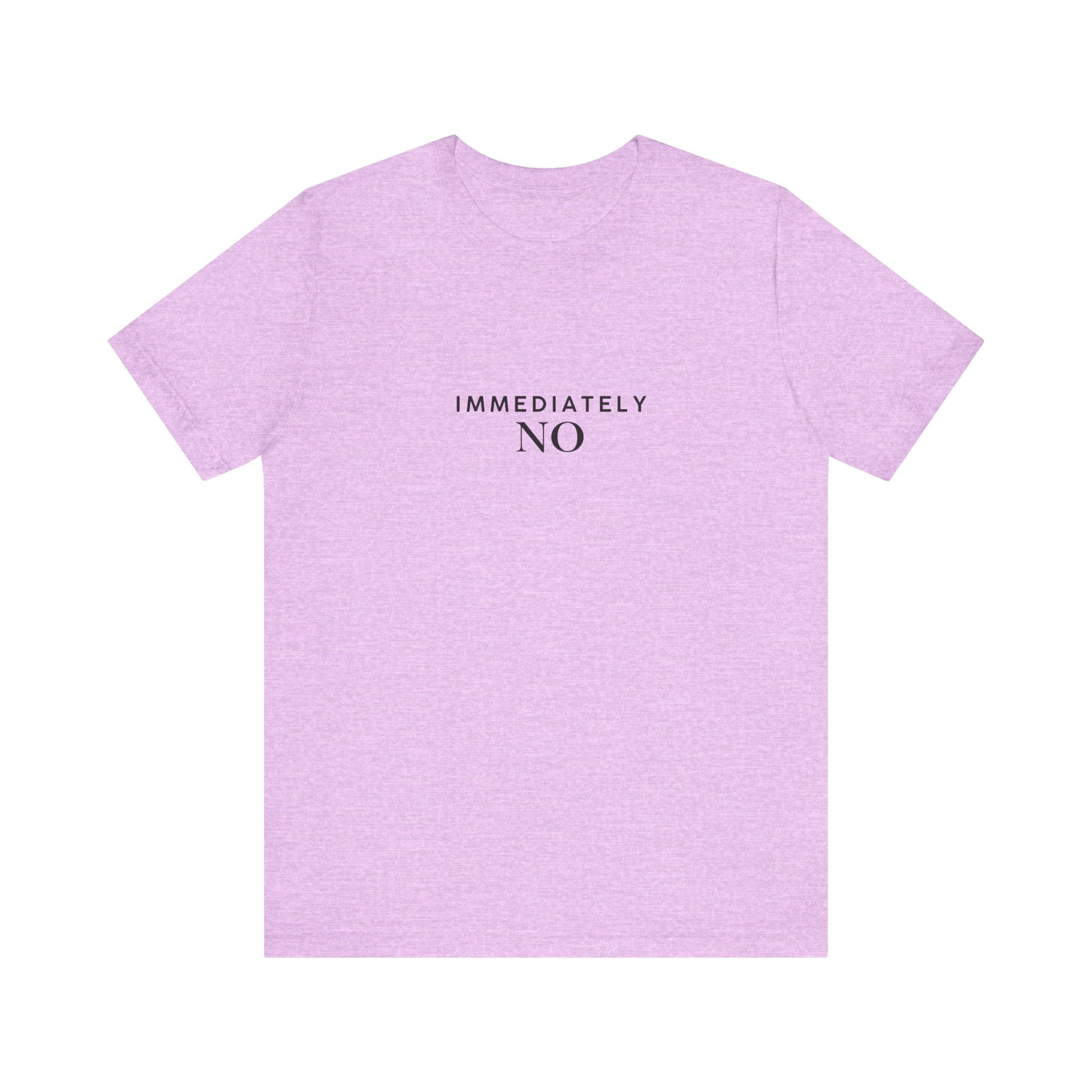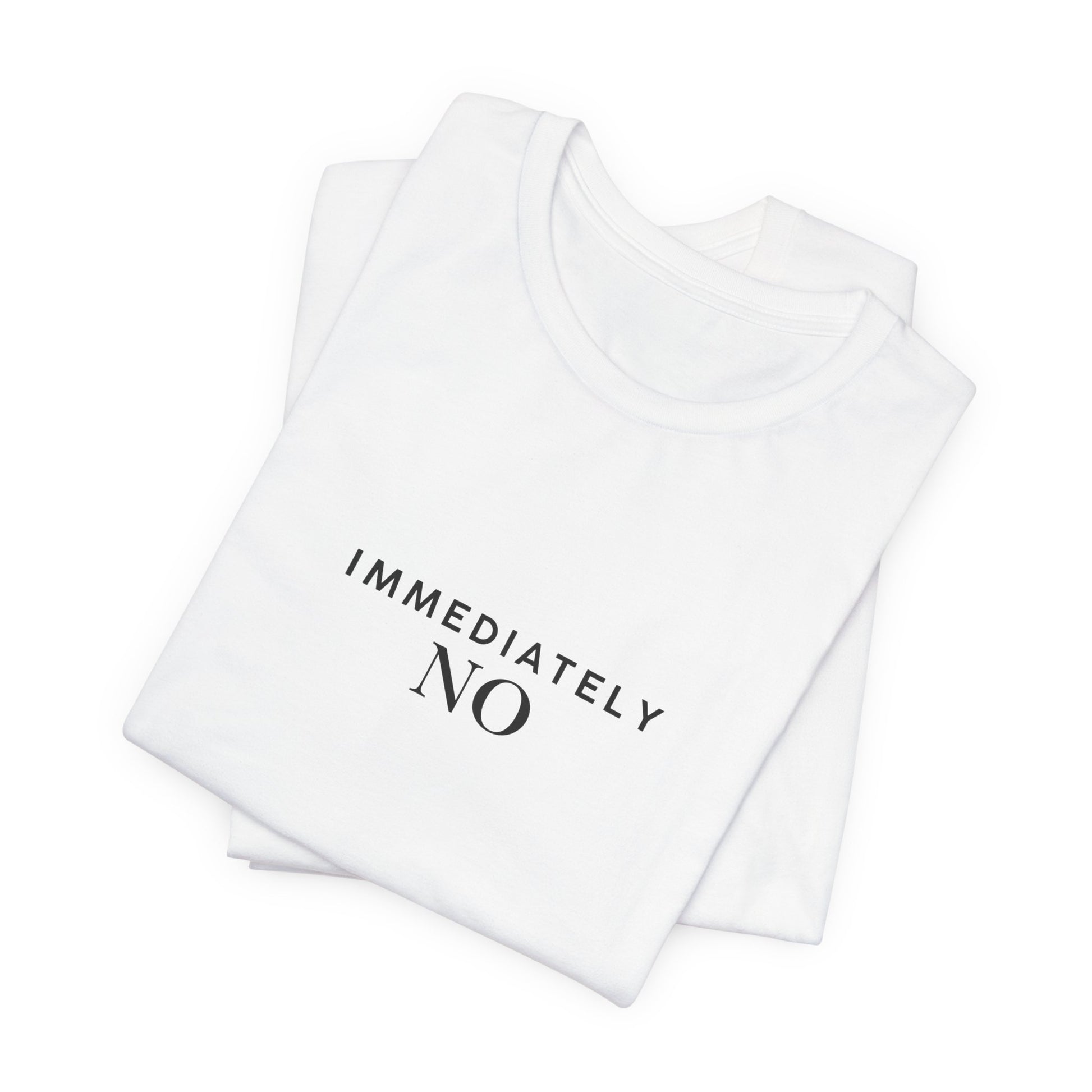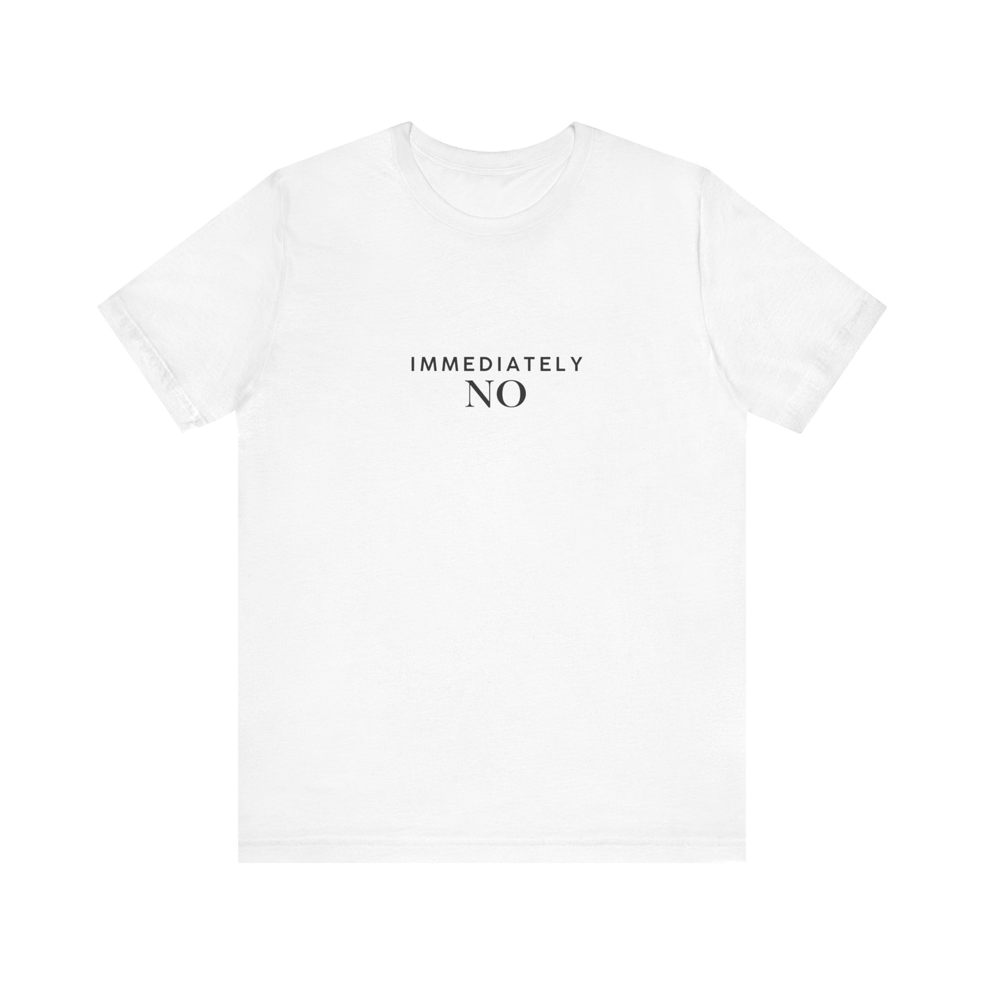 Unisex Jersey Short Sleeve Tee with 'Immediately No' Design, Casual Graphic Tee, Funny Gift for Friends, Everyday Wear, Comfortable T-Shirt